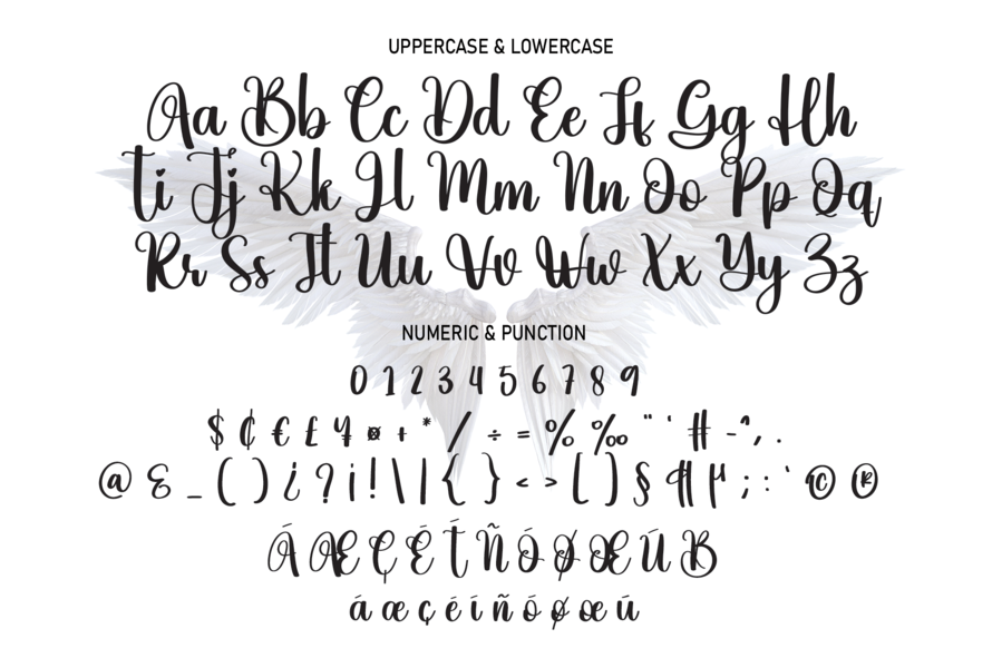This font includes a complete set of beautiful upper and lowercase letters, numbers, a wide variety of punctuation marks, and ligatures. All lowercase letters include a start and end, providing a realistic style. everything you get.